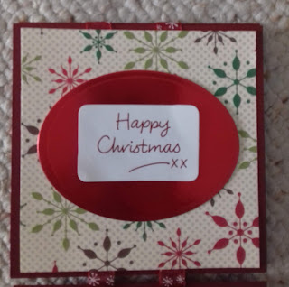 I do have a card of sorts to show you today. This is a hanging Christmas card. The images are decoupage, so are 3D. There is a blank white piece of card on the back for your message. The panels are approximately 4" square with matching ribbon. I will be making some more of these to sell in my Etsy shop.